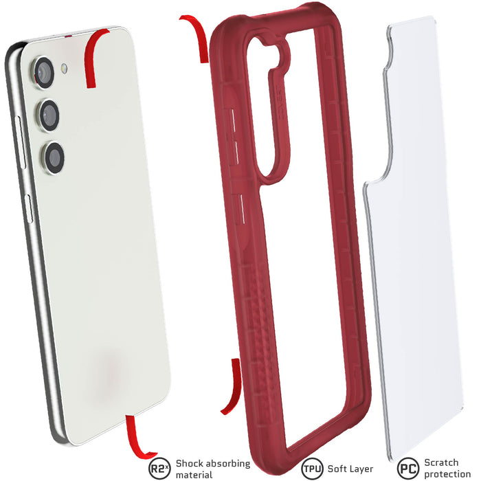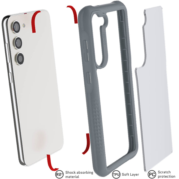 Looking for an S23 phone case that will show off your device while also providing it with protection? Look no further than our COVERT clear Samsung Galaxy S23 case. Made from durable, lightweight materials, this silicone case is perfect for protecting your phone from drops, falls, scratches, and other damages. It also includes an anti-yellowing coating to keep it looking great for months to come. Our S23 Ultra case is perfectly sculpted to support wireless charging, reverse charging, and provides easy access to the S-Pen stylus. Lifted bumper edges protect the stunning screen and camera lenses. The anti-slip grip sides help prevent accidental drops, and if they do happen, the R2x shockproof corners will keep your phone safe. Buying the 2023 Galaxy S23, S23+, or S23 Ultra? Grab a shockproof protective case now!